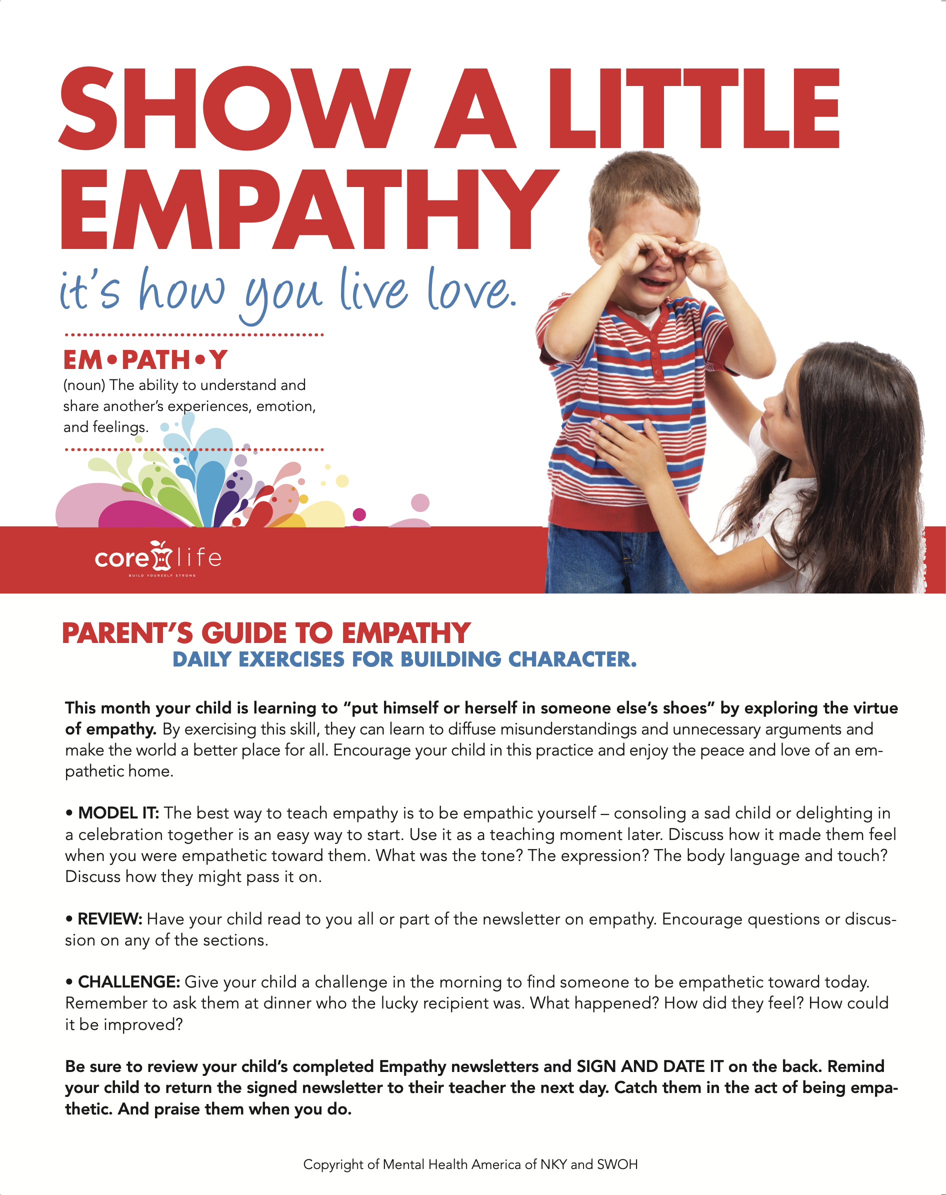 Between 2013-2016, Mental Health America of Northern Kentucky and Southwest Ohio developed a program called Core Life designed to improve 18 character traits in children in Grades K-4. Drawing on research from the Search Institute’s Developmental Assets® framework, Core Life was created to empower parents, teachers, and youth leaders in multiple settings to help youth succeed in life.