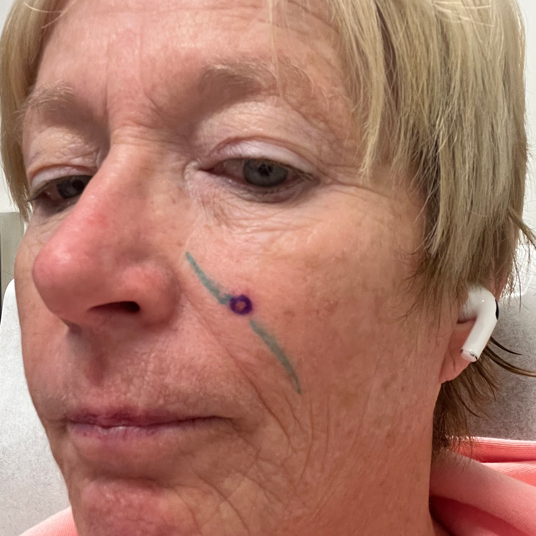 Given the location of the lesion, Dr. Ahern referred Mary Lynn to Nicole Warner, MD, for Mohs surgery. This procedure spares as much healthy tissue as possible, leaving patients with less scarring than other surgeries. This procedure spares as much healthy tissue as possible, leaving patients with less scarring than other surgeries.